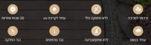 20 שנות אחריות על כל חלקי הדק – כולל עמידות, צבע והתקנה מקצועית, שמעניקים שקט נפשי מלא.